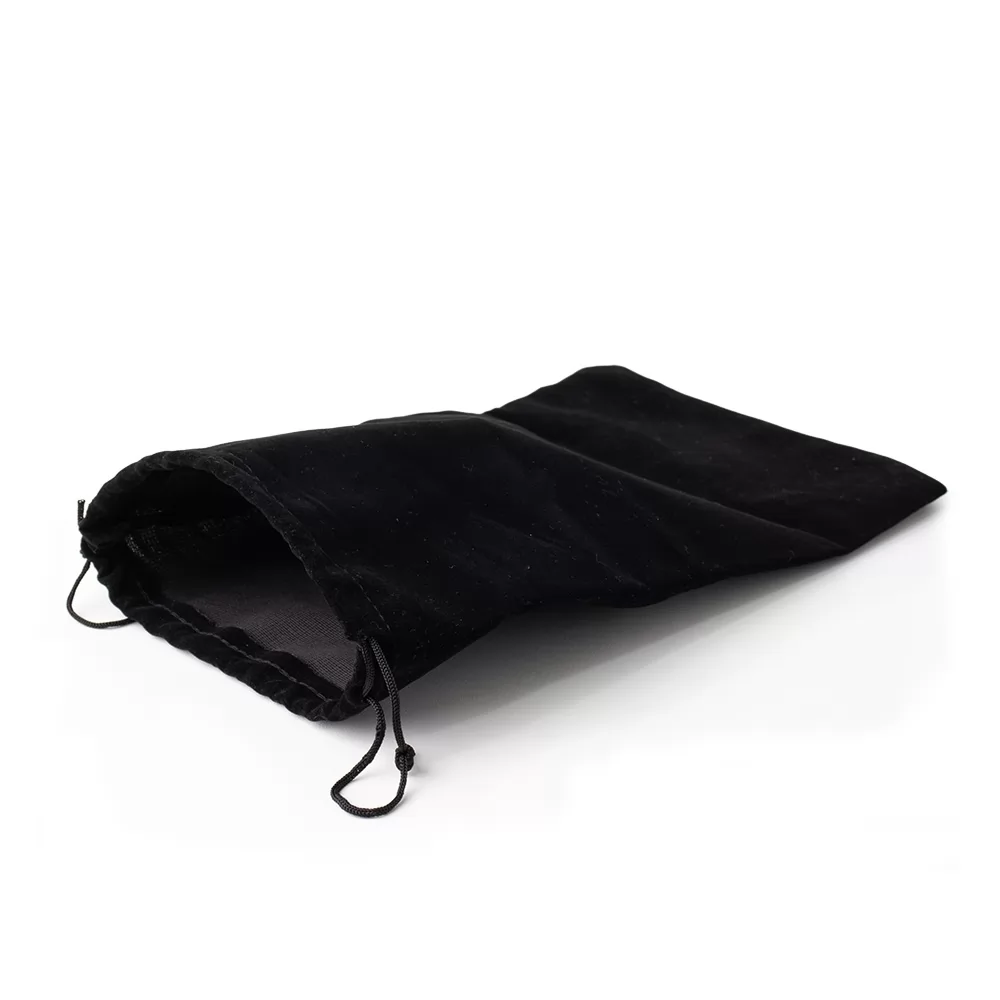Saco de veludo com cordão duplo ajustável.