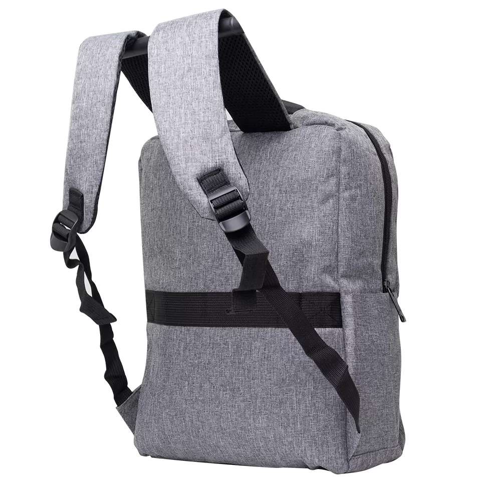 Mochila de nylon 22 Litros com detalhes em couro sintético e três compartimentos, sendo o principal com bolso para notebook 15,6. Mochila possui bolso lateral e suporte externo usb.